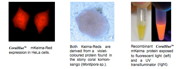 CoralHue™ fluorescent proteins were co-developed with the Laboratory for Cell Function and Dynamics, the Advanced Technology Development Center, the Brain Science Institute, RIKEN. MBL possesses the license and deals in the products.