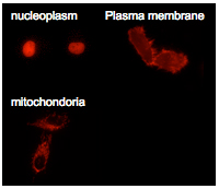 dKeima-Red and mKeima-Red are easily expressed in a wide range of organisms. dKeima-Red and mKeima-Red has been demonstrated in the nucleoplasm, plasma membrane, and mitochondria targeting signal models.